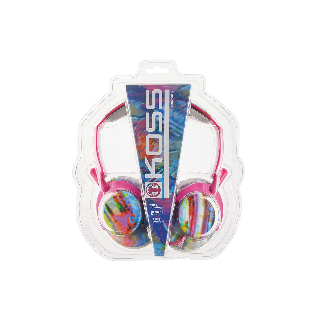 Koss Headphone Full Size Noise Isolating Deep Bass Extra Comfort Fold Flat Design Adjustable Padded Headband 3.5mm 4ft - Pink