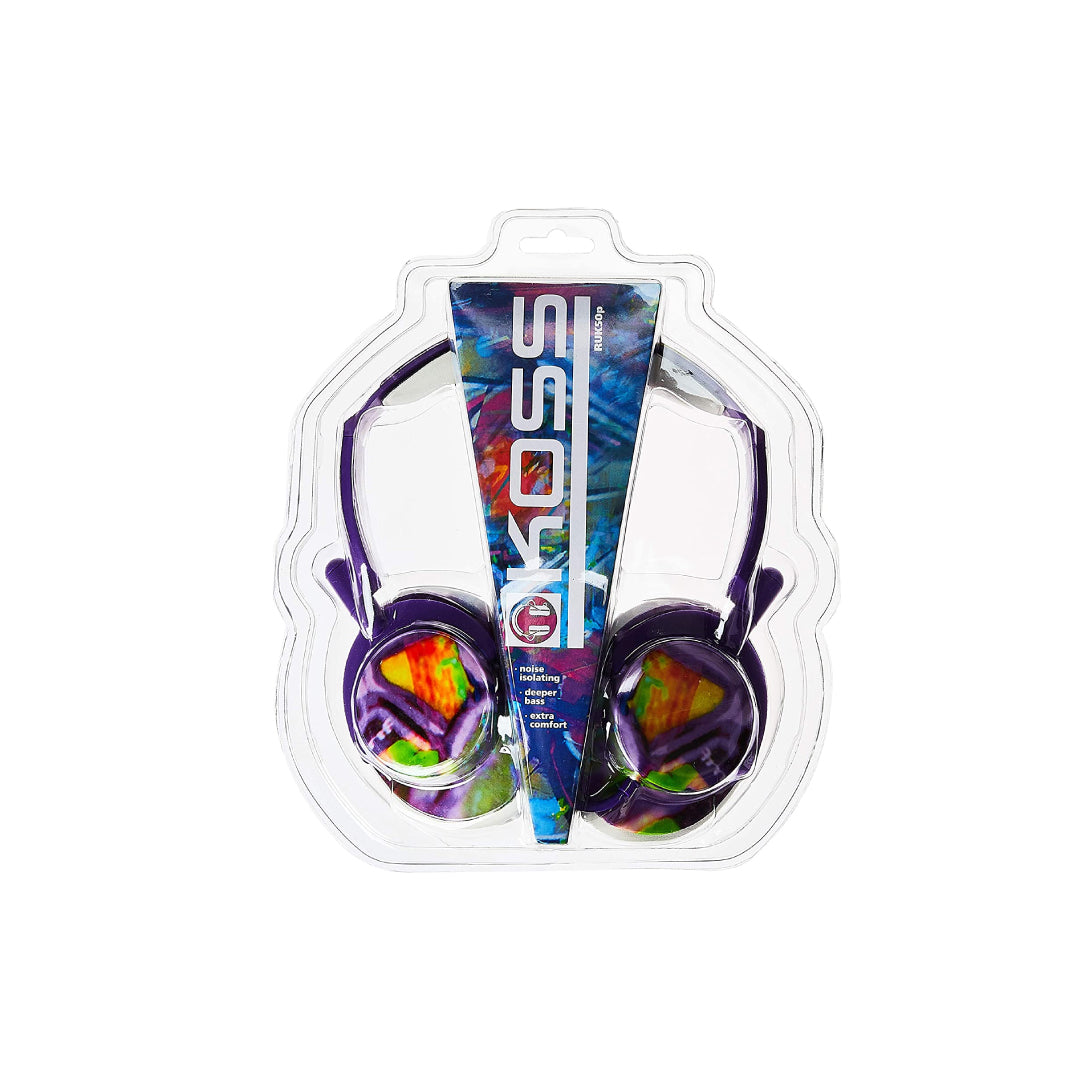 Koss Headphone Full Size Noise Isolating Deep Bass Extra Comfort Fold Flat Design Adjustable Padded Headband 3.5mm 4ft - Purple